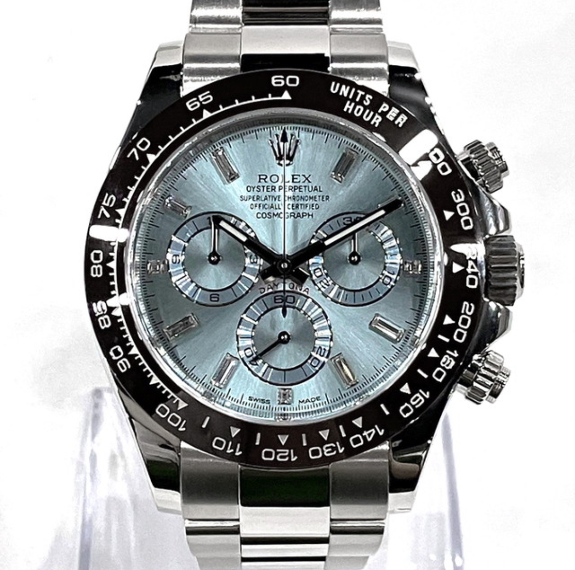 多くの芸能人やセレブが愛用していて、特にこのアイスブルーのプラチナモデル(Ref.116506A)は、一般的なデイトナとは一線を画す存在。